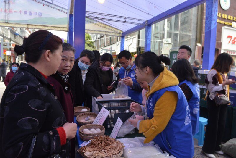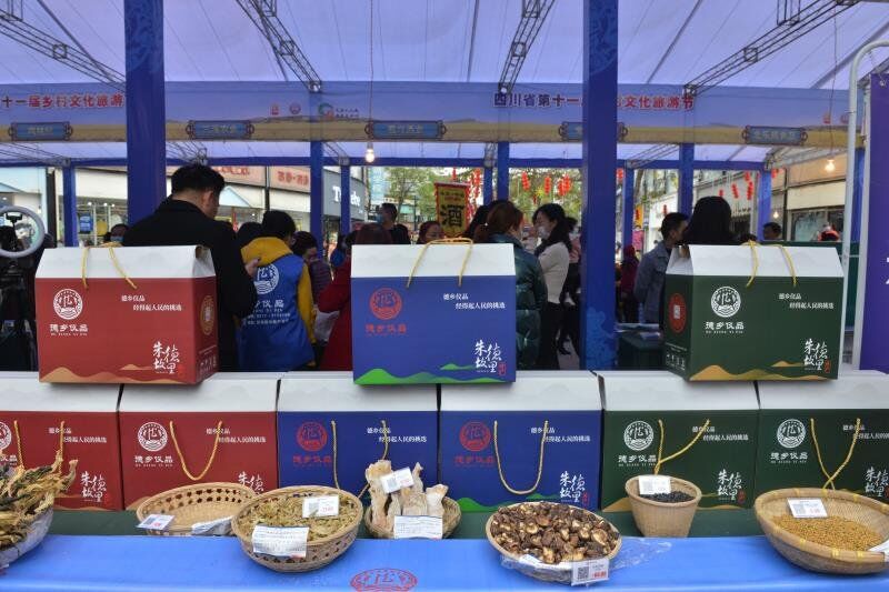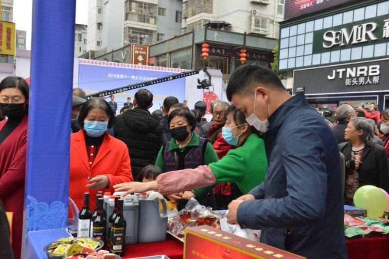 4月1日上午,四川省第十一届乡村文化旅游节暨南充市乡村特色文旅商品展销会在仪陇县德乡仪品步行街拉开了帷幕,现场的特色农产品吸引了众多市民前来品尝、购买。