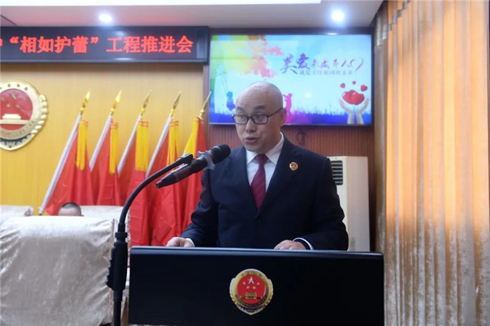 会上,蓬安县人民检察院党组成员、副检察长谢智明通报了未成年人保护的严峻形势和蓬安县未成年人检察工作情况,解读了《蓬安县未成年人立体保护“相如护蕾”工程实施意见》(下称《实施意见》)的主要内容和特点,并提出了工作要求。蓬安县委常委、政法委书记陈燕辉代表蓬安县委作了讲话,他特别指出开展该项工作召开的时间很有寓意,参与的单位很有用意,课题的选择很有深意,同时对推进未成年人立体保护“相如护蕾”工程提出了新希望和新要求,指出开展护蕾行动既是工作责任更是千钧重任,既要找到出路更要闯出新路,既要主动尽力更要形成合力,要通过工作开展助力社会治理,促进法治蓬安、平安蓬安建设。