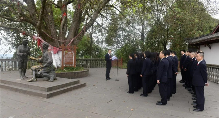 “我志愿加入中国共产党,拥护党的纲领,遵守党的章程,履行党员义务,执行党的决定,严守党的纪律……”该院全体党员在院党组成员、政治部主任唐建东带领下重温入党誓词。高亢的宣誓声,铿锵有力的誓词,回响在龙角山上红军树前。党员们仿佛回到了当年入党时那斗志昂扬的激情时刻,更加清楚自己肩上沉甸甸的重任,坚定了决心,明确了方向:要牢记党的宗旨,坚定理想信念,明确目标追求,永葆党员本色,对党忠诚,为党尽责。