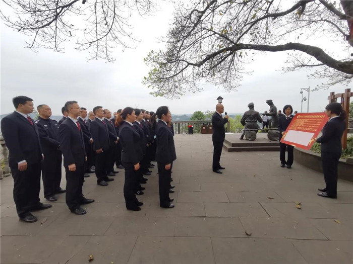 四川新闻网消息(刘渲 文/图)3月17日下午,在建党百年之际,南充市蓬安县人民检察院把党史学习教育和检察队伍教育整顿结合起来,组织全院党员干警来到蓬安县龙角山红军树前举行重温入党誓词仪式,以缅怀革命先烈,继承革命传统,不忘初心、牢记使命。