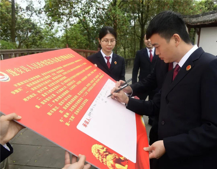该院党组成员、副检察长谢智明宣读了《蓬安县人民检察院队伍教育整顿承诺书》,全体党员随后依次在承诺书上庄重签下了自己的名字。