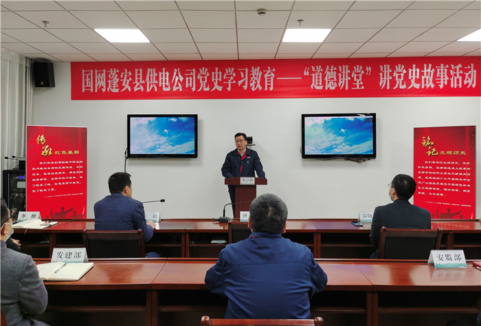 据了解,“道德讲堂”讲党史故事是国网蓬安县供电公司党史学习教育系列活动之一,该公司采取各级党员干部每周深入党建联系党支部讲故事的形式,推动党史学习教育深入群众、深入基层、深入人心,促进全体党员在学习党史中传承革命精神,升华初心、坚定信心、践行使命,以更加昂扬的精神状态和奋斗姿态融入国网南充供电公司“16333”发展体系,在为中华民族伟大复兴提供坚实电力支撑的各个基层岗位中,以更加优异的业绩迎接中国共产党建党100周年。