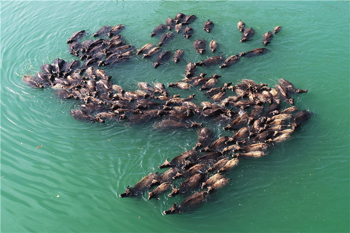 每年暮春到初秋时节,数以万计的游客不远千里来蓬安看“百牛渡江”生态奇观。其实,他们感受的是农耕文明内涵,回味的是故乡味道。
