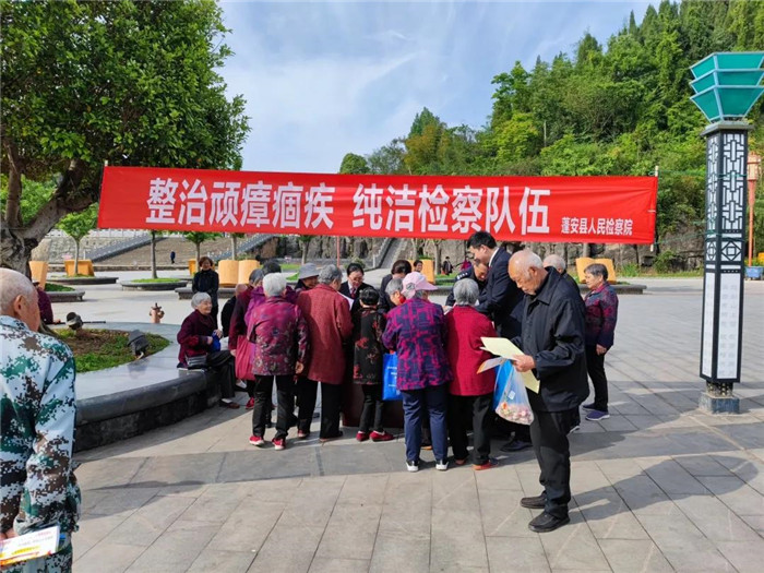 开展整治“顽瘴痼疾”宣传,广泛征求意见建议。围绕“整治顽瘴痼疾,纯洁检察队伍”主题,开展了关于“六大顽瘴痼疾”专项整治宣传活动。通过微信、微博等平台发布了《四川省蓬安县人民检察院关于顽瘴痼疾专项整治内容》公告,通过问卷调查方式开展了关于六大顽瘴痼疾情况的调查,广泛收集了人民群众对蓬安县人民检察院相关内设部门及干警的意见和建议,拓宽了发现问题线索的渠道。进一步查明该院干警存在“六大顽瘴痼疾”情况,进一步抓紧抓实查纠整改工作。