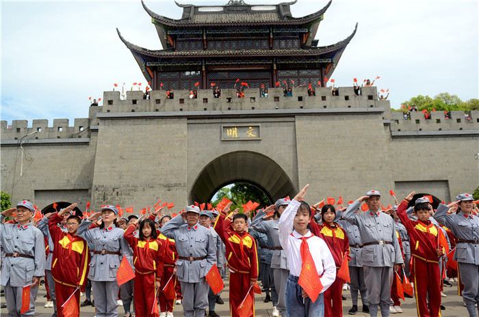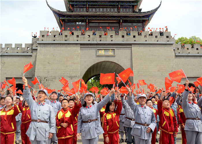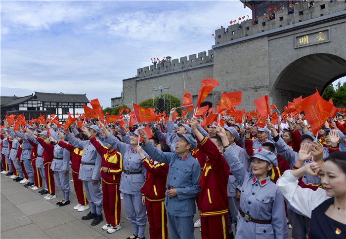 四川新闻网消息(记者 郭建坤 )“唱支山歌给党听,我把党来比母亲;母亲只生了我的身,党的光辉照我心…”5月17日,在南充市蓬安县相如故城文明门前广场,千人快闪“唱支山歌给党听”激情上演。他们精神饱满、歌声嘹亮,唱出了赤诚之情和爱党之心,游客们纷纷驻足聆听。