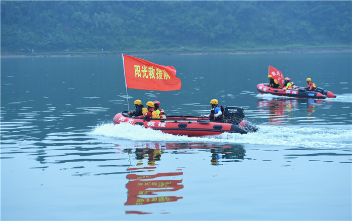 5月21日,南充市蓬安县在嘉陵江锦屏镇中坝村段开展2021年防汛抢险应急实战演练。来自水务、应急、海事、医疗、阳光公益救援队等单位的近200名救援人员参与“撤离避险孤岛救人”,“船只失控应急抢险”,“群众落水紧急救援”等科目,为防汛抢险积累了实战经验,增强了突发灾害的应急反应及处置能力。