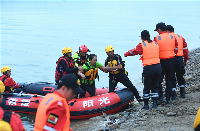 险情就是命令!根据指挥部的安排,消防救援大队和阳光救援队驾驶冲锋舟,携带救生设备迅速前往江心孤岛,在行进过程中多次遇到激流和水面漂浮物,只见冲锋舟驾驶员采取“S”型、“O”型专业避障技术,迅速安全到达救援地点开展救援,成功解救被困群众。