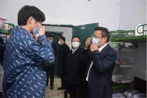 黎明仔细询问了学校防疫及复学工作进展情况,前往学校的入校通道、报到处等场所进行实地察看,详细了解了体温检测、复学人数、分段错峰就餐等情况。随后,深入学生食堂检查食材质量及工作人员是否按规范操作,了解取餐、送餐、就餐流程是否安全。并走进宿舍楼,检查宿舍管理情况,与学生亲切交谈,了解学生开学心理状态。