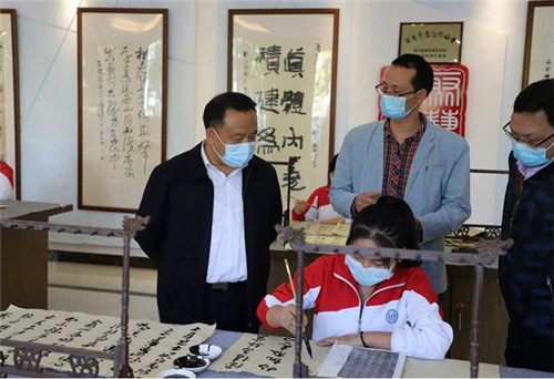 | 代俊(右一)局长参观学校学生艺术活动中心 |