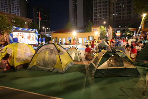 晚餐是学校精心准备的“冷餐会”, 孩子们在老师的组织下,手牵手有序入场进餐,与同学有说有笑,大快朵颐,共享相聚的时光。餐后,孩子们还和老师、好友一起,在帐篷里一起吃零食、看电影,体验“帐篷之夜”带来的无限乐趣。随后,在班级老师有序组织下,在家委会的守护下,孩子们在学校度过了一个“难忘之夜”,4日早晨,孩子们才高高兴兴整理被褥离园回家。
