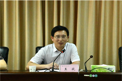 王斌介绍了蒲江县职业中专学校的基本情况,表达了与该校在学前教育专业五年制人才贯通培养上精诚合作的良好愿望和期待。