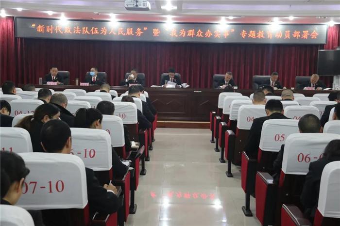 马建威强调,要提高思想认识。开展“新时代政法队伍为人民服务”专题教育,是上级政法队伍教育整顿领导小组作出的安排部署,是结合实际创新教育形式、丰富实践载体、增强干警宗旨意识的有力举措,全院干警务必从讲政治、顾大局的高度来抓好这项工作。要注重实际效果。要通过专题教育,切实改变接待诉讼群众态度生硬、倾听群众诉求满不在乎、解答群众疑问简单粗暴的不良作风。要以为群众办实事解难题为出发点,全面推进一站式多元解纷和诉讼服务体系建设,不断提升司法服务质量和效率。要做好总结宣传。要分阶段做好专题教育工作总结和相关资料收集、归档,对开展扎实、成效突出的部门予以通报表扬,对开展不力、应付了事的部门予以通报批评。要充分运用各类宣传渠道加强宣传,强化成果运用。
