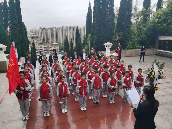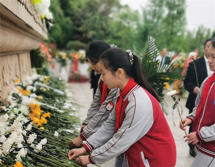 师生们在庄严肃穆的革命烈士纪念碑前,向英雄纪念碑敬献鲜花,肃穆默哀。少先队员们进行了庄严宣誓,用最诚挚的声音表达出了对先烈们最崇高的敬意。