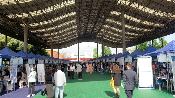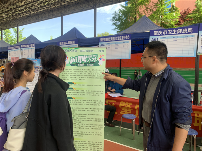 在现场,四川新闻网看到从广东省肇庆市卫生健康局远道而来参加双选会的展前络绎不绝。据该局现场招聘负责人林泽欣表示,“从2019年开始,为大力实施人才兴院战略,我们肇庆市用3年时间引进基层医疗卫生特殊紧缺人才(含医护药技)1000名以上,现在肇庆市正组织实施‘千人强基计划’,今天来参加双选会我市卫健局总共组织了15家医院来到川北医学院引进医疗人才,还能提供事业编制,希望今天能招聘到心仪的医疗人才。”