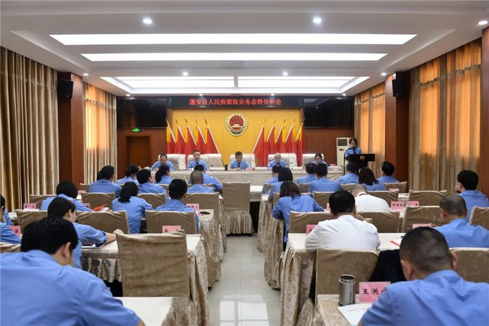 四川新闻网消息(刘畅 文/图)为全面准确反映各业务部门工作成效、问题和不足,扎实、有序、稳步推进各项检察业务工作,确保队伍教育整顿和检察业务工作两不误、两促进,5月8日下午,南充市蓬安县人民检察院召开检察业务态势分析会暨业务工作推进会。该院党组成员、副检察长刘文富主持会议,全体干警参加会议。