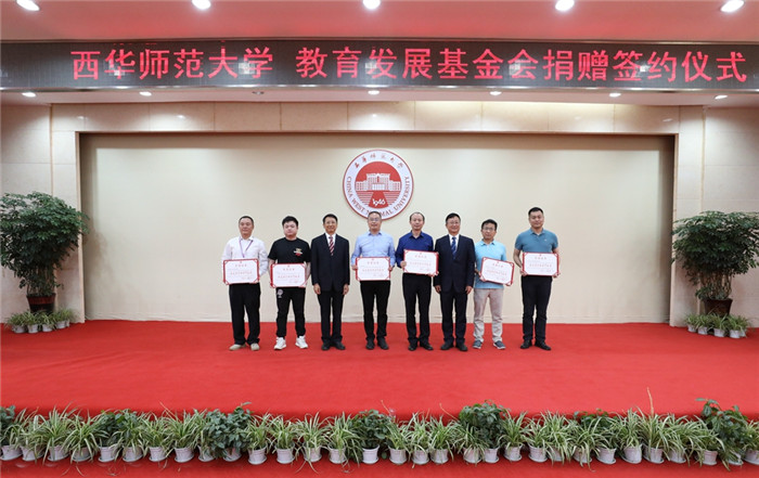 大会上,校友创业家联谊会理事长、广州校友会会长、广州市精立通讯工程有限公司董事长王岳,深圳校友会会长、校友创业家联谊会顾问、深圳金盛源建筑工程有限公司总经理刘德康,广州校友会执行会长、校友创业家联谊会副秘书长、广州市九龙湖生态旅游开发有限公司总经理向永盛分别代表校友创业家联谊会、深圳校友会、广州校友会进行捐赠并签约,校友创业家联谊会副理事长、秘书长、广州校友会副会长、上海迪怩司食品销售有限公司董事长陈华兵,广安校友会筹备组成员、邻水县英才实验学校董事长吕东林,校友创业家联谊会副理事长、眉山校友会副会长、天府新区信息技术学院董事长蓝文才进行捐赠并签约。西华师范大学党委副书记、校长王元君代表学校签约并接受捐赠,该校党委书记王安平逐一授予捐赠证书。