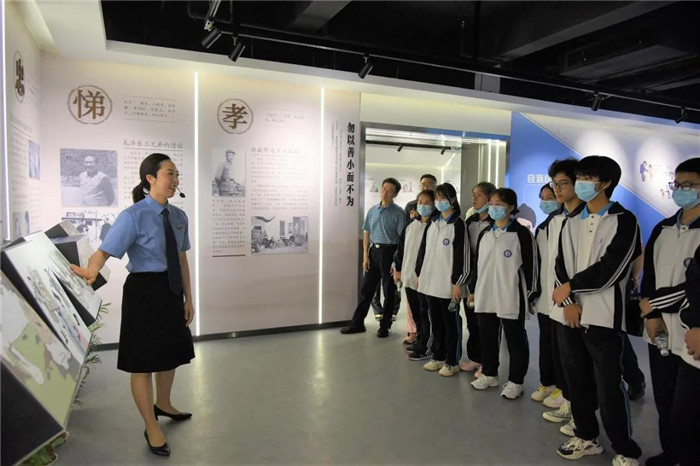 随后,代表和同学们来到了位于南充市检察院的南充市青少年法治教育基地参观。大家依次穿过“一念之邪,深渊凝视”、“一念之正,光明在心”、“法治实践活动区”等展区,体验3D动态实景,参与AR、VR防毒品、防性侵和交通、消防、地震、模拟法庭等,并进行现场互动。