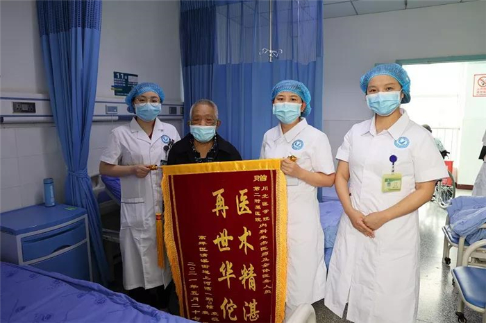 四川新闻网消息(石景武 朱杰 记者 郭建坤 文/图)近日,在川北医学院第二附属医院内科住院治疗的袁大爷在出院之际,与其家属一同向内科医师朱杰及全体医护人员送上锦旗,感谢医生对他的救命之恩。