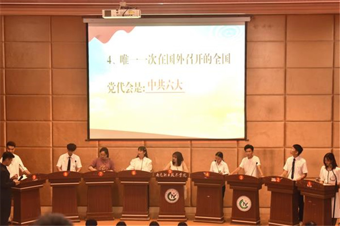 经过初赛的激烈角逐,共有9名同学入围决赛。决赛在雄壮的国歌声中拉开帷幕,活动分为必答题、抢答题、加分题三个环节,整场活动井然有序,精彩纷呈,各选手激烈角逐,展现了各自的风采,体现出选手们不仅在学习上是佼佼者,在文化素养上也是精兵强将。随后活动在《没有共产党就没有新中国》的歌声中结束。