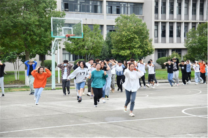 随着第一声地震警报响起,学生们双手抱住头部,迅速躲到课桌下;第二声紧急疏散警报响后,学生们在辅导员老师统一指挥下用手护住头部,紧张、有序、快速地撤离了教室,按照预案规定的疏散路线撤离到“应急避难场所”——利奥楼篮球场,辅导员清点本班学生人数,向本系演练负责人报告人数及伤员情况,整个过程快速、有序。