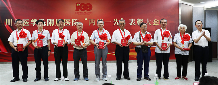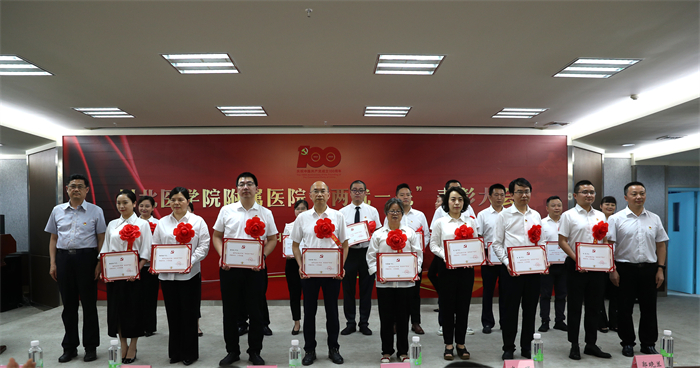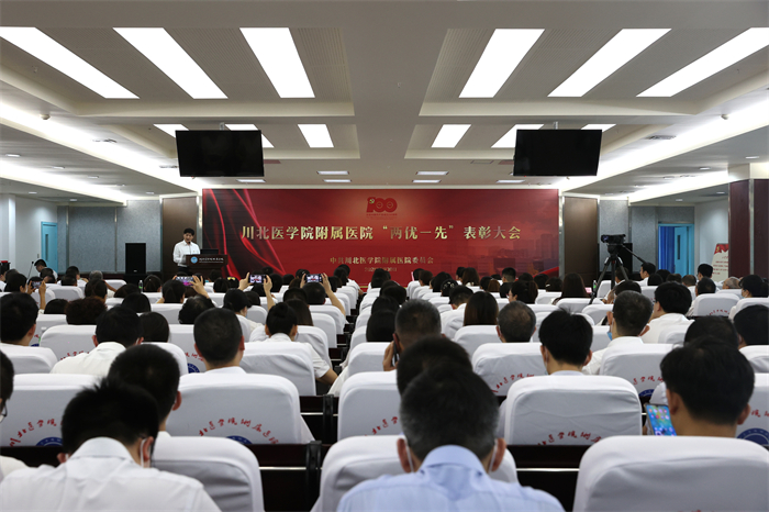 在“两优一先”表彰环节,川北医学院附属医院院长谢建平宣读了《中共川北医学院附属医院委员会关于表彰医院优秀共产党员、优秀党务工作者和先进基层党组织的决定》。10个党支部获得“先进基层党组织”称号,20名同志获得“优秀共产党员”称号,10名同志获得“优秀党务工作者”称号,医院领导分别为获奖集体和个人颁奖。