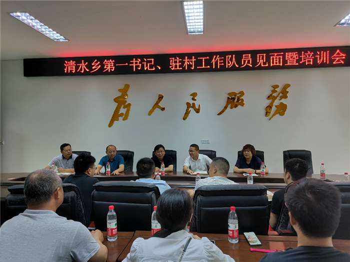清水乡乡长黄明介绍了清水乡的发展概况和清水乡乡村产业发展基本情况。第一书记杨胜喜、工作队队员蒲草分别作了表态发言,表示将不辱使命,不负当担。