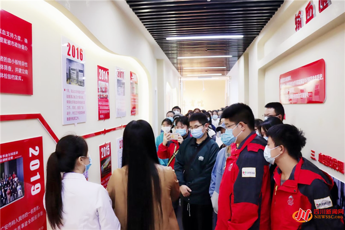 四川新闻网消息(程欣 记者 郭建坤 文/图)近日,金彩虹公益协会、南充市红十字志愿者协会的高校志愿者们先后参观南充市无偿献血科普教育馆,活动旨在进一步普及血液科普文化知识,推进无偿献血进校园公益宣传活动。