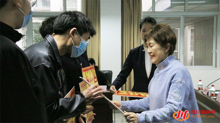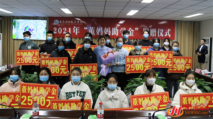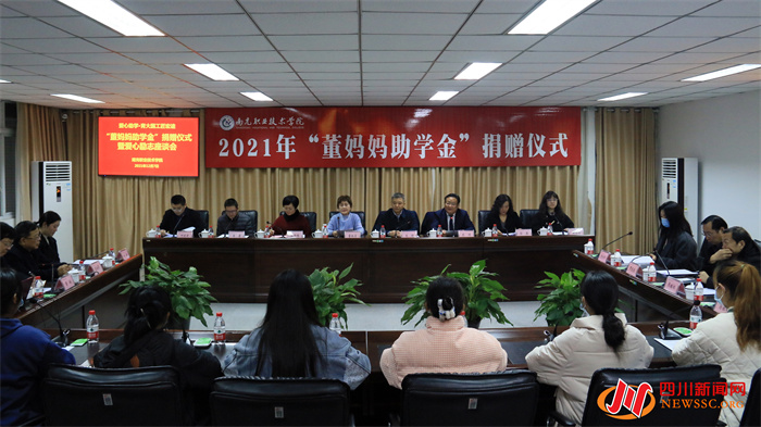 四川新闻网消息(曾莎莎 记者 郭建坤 文/图)“今天我不是来捐款的,我是来捐志气的……”世界台商联合总会副会长董淑贞说道。12月7日上午,“董妈妈助学金”发放仪式在南充职业技术学院208会议室隆重举行。本次捐赠活动中,董淑贞女士向该院20名学生捐资助学共计5万余元。世界台商联合总会副会长董淑珍、四川省委统战部副部长、四川省侨办主任文甦、南充市人民政府副市长欧阳梅等相关领导出席发放仪式。该活动由南充职业技术学院党委书记黎明主持。