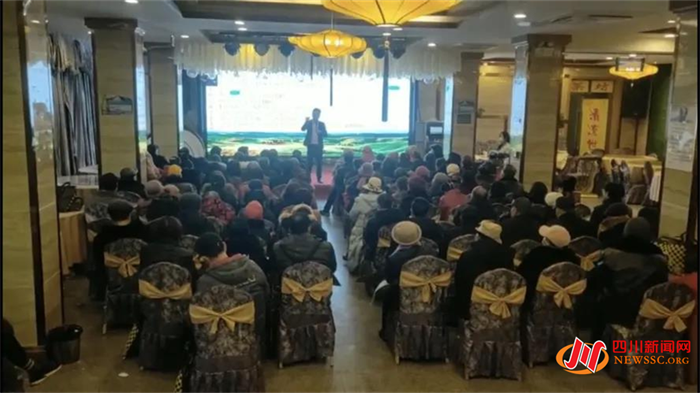 四川新闻网消息(冯川 记者 郭建坤 文/图)近日,蓬安县市场监督管理局接到群众举报,称在建设中路某酒店宴会厅,有人以会销形式虚假宣传销售食品。