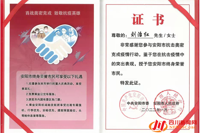 据了解,安阳市为感谢到安参与抗击奥密克戎疫情行动的工作人员,授予他们“安阳市终身荣誉市民”的称号,重大庆典活动享受贵宾礼、免费乘坐公交车、国有景区免门票、行李安检优先等礼遇。