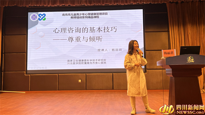培训专家团队由川北医学院附属南充市身心医院、西南石油大学、西华师范大学、川北医学院、南充高级中学的13名专家学者组成。培训采用主会场线下与分会场线上同步的模式进行,培训共分为“心理精神疾病认知”“心理健康课堂教学技能”“心理健康教师技能提升”三大版块13个主题,通过讲授、讨论、示范的形式与参训人员进行了交流。