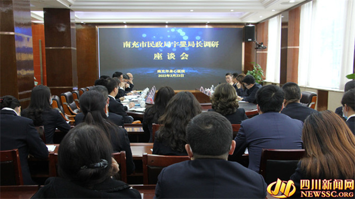 四川新闻网消息 3月23日下午,南充市民政局党组书记、局长宇旻到南充市身心医院调研指导工作并召开座谈会,医院党委书记刘月光、院长安先勇及党政领导成员陪同调研,医院中层干部参加座谈。