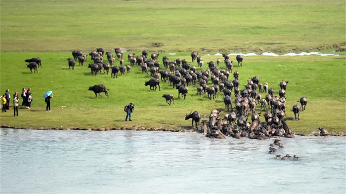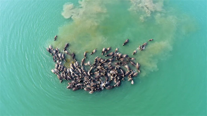 今年的放牛季以“共享生态文明 体验自然和谐”为主题,改变了以往的观牛模式,创新展现不同以往的视角和感官体验。运用航拍、地面直播设备等先进技术,近距离跟随百余头水牛,横渡嘉陵江寻水觅食。