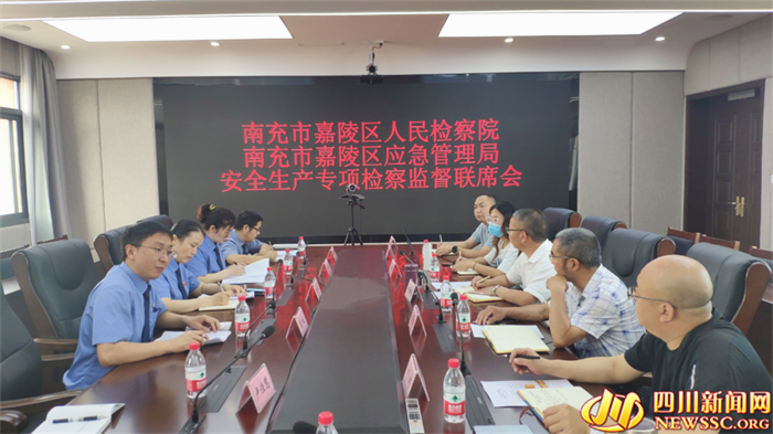 四川新闻网消息 为深入贯彻落实最高人民检察院“八号检察建议”,筑牢安全生产防线,5月10日,南充市嘉陵区人民检察院与嘉陵区应急管理局召开安全生产专项检察监督联席会。该院党组成员、副检察长张利君,检察委员会专职委员郑小林,嘉陵区应急管理局党组成员、副局长何全洪,双方相关负责同志参加会议。