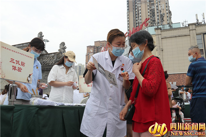 另一边的义诊现场,来自南充市中医医院的名中医,为过往群众免费测量血压、体质辨识、答疑解惑,普及中医养生知识,指导群众简便易行的中医保健方法,让更多老百姓走近中医、了解中医、信任中医。同时,通过望、闻、问、切,辨证施治的方法向群众提供个性化的诊疗方案和合理的养生保健方法,并现场为患者进行康复治疗。专家们还针对夏季高发病、老年病等多发常见问题现场答疑,提升老年人预防保健意识。