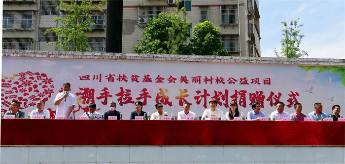 四川新闻网消息(彭杰 记者 郭建坤 文/图)近日,四川省南充市营山县骆市小学操场上,热闹非凡,爱心涌动。四川省扶贫基金会美丽村校公益项目——蔓溯手拉手成长计划捐赠仪式在此举行。四川省扶贫基金会南充分会会长、扶贫开发协会会长李盛文,营山县委常委、宣传部部长何铮等领导,以及杭州蔓溯文化创意有限公司董事长张若驰先生、郭杨女士出席,捐赠仪式由营山县扶贫开发协会会长宁幼康主持。