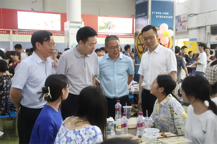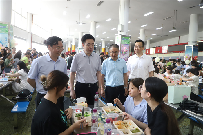 活动期间,校领导王元君、陈涛、刘利才、张明、龙汉武、李敏、张泽钧,校党委常委周道春来到现场,和大家话离别,合影留念。校党委书记王元君和地理科学学院陈茂延、曹迈歌、李炜翌等同学亲切交流,“你们的开学典礼是在雨中举行,今早的毕业典礼你们又一次经历了雨过天晴。”他边坐下边将自己餐盘中的鱼肉分给学生,笑着祝福,“听到你们都签了不错的单位,我感到很高兴,你们要成长为社会需要的综合型人才,在新的人生阶段谱写崭新篇章”。校党委副书记、校长陈涛听到计算机学院学生宋艺介绍自己保送到西南交通大学读研、学生吕子豪考取了本校研究生时欣慰地鼓励道,“母校以你们为傲,祝你们跃进新龙门,为国家社会做出新贡献。”