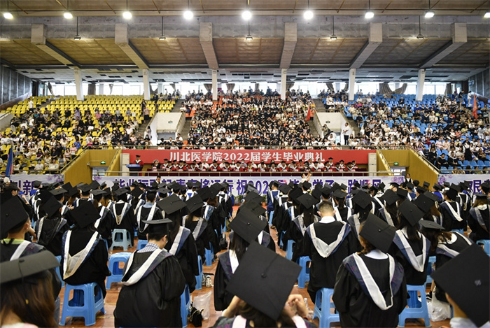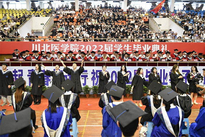 四川新闻网消息 6月24日上午,川北医学院2022届学生毕业典礼暨学位授予仪式在顺庆区西山运动场日月馆举行。学校领导,各教学院系、相关职能部门主要负责人,硕士研究生导师代表、教师代表,2022届毕业生及在校学生代表等参加毕业典礼。