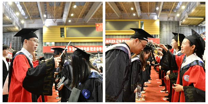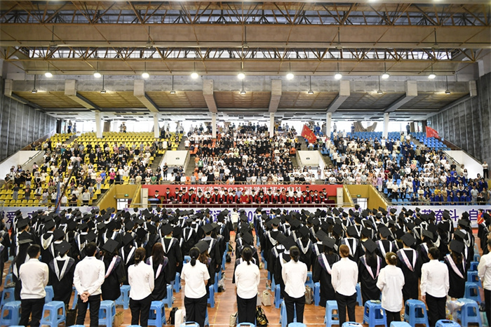 “嘉陵滔滔,西山秀丽,春风化雨李桃开;慈怀柔肠,奉献爱心,妙手回春欢颜在……”毕业典礼暨学位授予仪式在全场师生齐唱的校歌声中圆满落幕,全体师长起立目送毕业生离场,祝福他们明日可期,归来少年。典礼通过线上方式同步直播,广大师生、家长、校友和社会各界人士共计1.3万余人次观看典礼实况。(供稿:川北医学院 邹思良 陈飞宇 周陈)