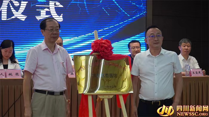 四川大学华西医院游潮教授和南部县中医医院党委书记姚益猛共同为“南部县中医医院 四川大学华西医院神经外科联盟医院”揭牌。