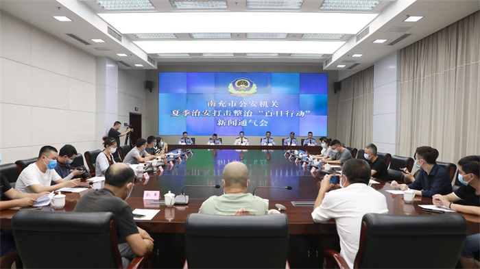 市公安局刑侦支队支队长、“百日行动”办公室主任任君龙现场发布《南充市公安机关夏季治安打击整治“百日行动”十大典型案例》,并接受记者提问;市公安局特巡警支队政委徐林,市公安局交警支队副支队长胡林,市公安局治安管理支队副支队长赵彬杉针对记者提出的问题,分别进行现场解答。