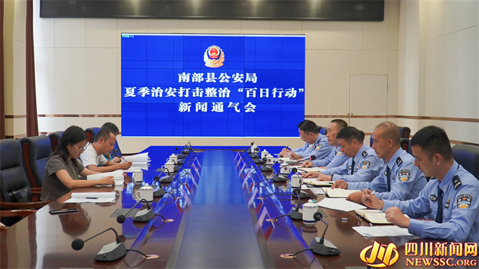 四川新闻网消息(张馨露 郭建坤 文/图)8月10日下午,南部县公安局夏季治安打击整治“百日行动”新闻通气会在该局三楼会议室召开。会议通报了“百日行动”整体推进情况,发布了十大典型案例。该公安局党委委员、副局长张君龙出席会议并通报有关情况。