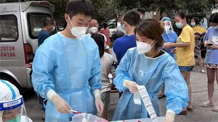 在宋珊开启工作模式的同时,庞得龙也开始了社区志愿服务工作。每天,他都在社区疫情防控奔走的路上,早上4点半开始协助医护人员组织小区居民有序采集核酸,挨家挨户核实有没有遗漏,帮助分装核酸标本,直到小区完成全员核酸采集。