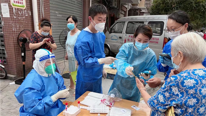 8月22日一早,刘明与家人去做核酸检测时发现,小区核酸检测点的核酸检测人员力量薄弱,检测任务重、工作压力大。“我正好轮休两天,看到社区工作人员和医务人员这么辛苦,就想着加入他们。我是党员,必须带头做点力所能及的事。”于是,刘明和家人及男友商量后,第一时间向社区申请,加入了核酸采集队伍。