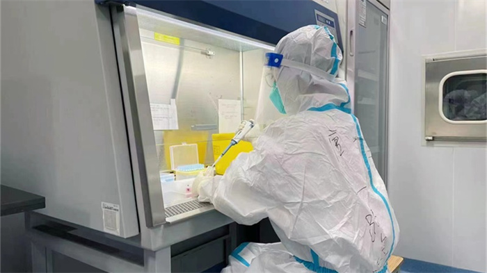“我要面对大量核酸检测标本,精神必须高度集中,每天平均工作时间差不多12个小时,期间不敢喝水,因为怕上厕所,出去一次就要换一套防护服,既浪费时间又浪费资源。”唐一鹭介绍,检验科医护人员把实验室当“战场”,坚持“不吃、不喝、不出实验室”成了大家近期的常态。