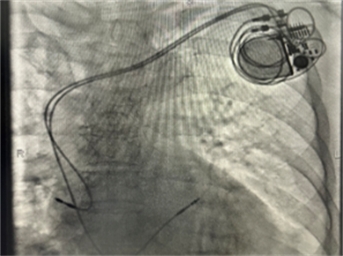 在上级医院专家的指导下,该院心内科团队默契配合、细致操作,历时75分钟,顺利完成首例永久性双腔心脏起搏器植入术。术后,起搏器工作正常,患者感觉良好,安返病房。