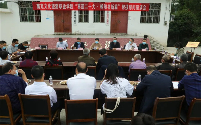 四川新闻网消息 近日,南充文化旅游职业学院党委书记王荣秀,党委副书记、院长杨建平带队,一行28人前往南部县万年镇朝阳村开展定点帮扶调研并与部分脱贫群众、党员、基层干部和普通群众代表召开座谈会并开展慰问活动,会议由党委副书记霍学超主持。全体领导班子和部门负责人成员参加。