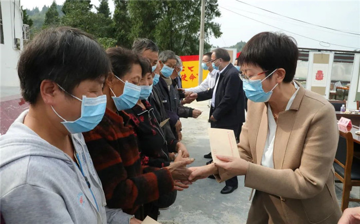 王荣秀对定点帮扶朝阳村工作表示肯定,对朝阳村荣获“四川省乡村振兴重点帮扶优秀村”表示祝贺。她指出,定点帮扶朝阳村以来呈现了新变化,取得了新成绩,成绩的取得离不开当地的关心和支持。她要求,驻村工作队要守住一条底线,守住不发生规模性返贫的底线,重点关注脱贫户、低保户、重病户、多子女户、老年户、特困户等人群;抓住两个重点,争取项目加强道路基础建设,改善老百姓出行条件,发展柑橘和蔬菜重点产业,盘活、壮大村集体经济;理清三本台账,即脱贫户台账,扎实做好定点帮扶工作,进一步巩固脱贫攻坚成果。对照2022年度帮扶计划台账,按时按量完成定点帮扶工作。对标考评指标,准备年度定点帮扶工作成效考评自查台账。
