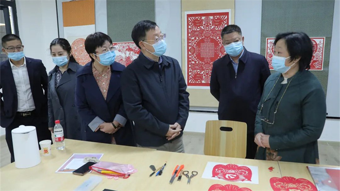 调研期间,戴允康先后前往该院演播厅、图书馆、实训室和皮影、剪纸非遗工作室等地,实地察看学院基础设施建设情况。同时,深入一线检查指导教师课堂教学、学生实训,观看教学成果展,了解学科建设及人才培养模式,听取学院师资队伍、招生工作、人才培养、校企合作、学生就业等情况汇报,详细询问学院在教育教学实践、传承和发扬地方民间文化艺术、服务大旅游产业链和地方经济社会发展等方面所采取的措施,取得的成就。