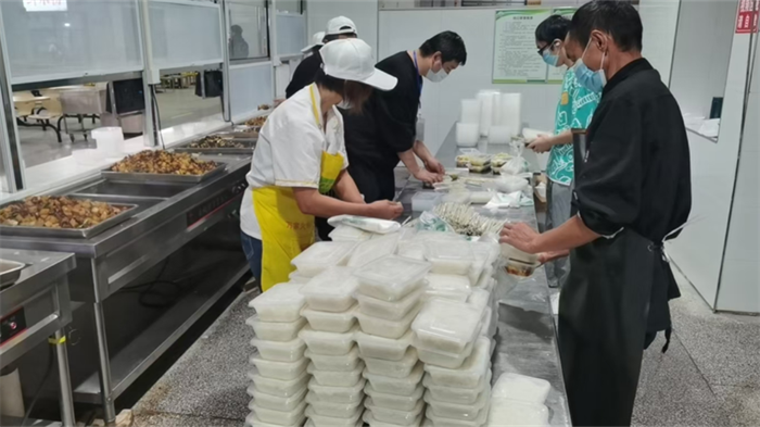 餐饮有保障,防疫有力量。凌晨4点,川北医学院的食堂就亮了起来。按学校防疫要求取消堂食以后,食堂除了承担校内13000余名学生和一线抗疫人员的饭菜打包、有序取餐工作外,还负责配送高坪校区、顺庆校区隔离点先后接待的1300余学生和校内志愿者的一日三餐,供餐的工作量相较往常增加了2倍以上。截至目前,配餐送餐26000余人次。